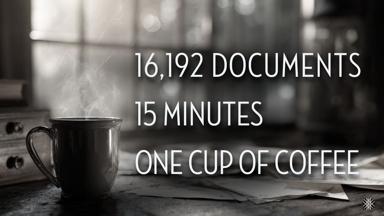 16,192 Documents. 15 minutes. One cup of coffee.